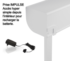 - Possibilité de recharger la batterie en cas d’utilisation intensive ou d’absence de luminosité extrême grâce à la prise IMPULSE et au chargeur BOOSTER+.